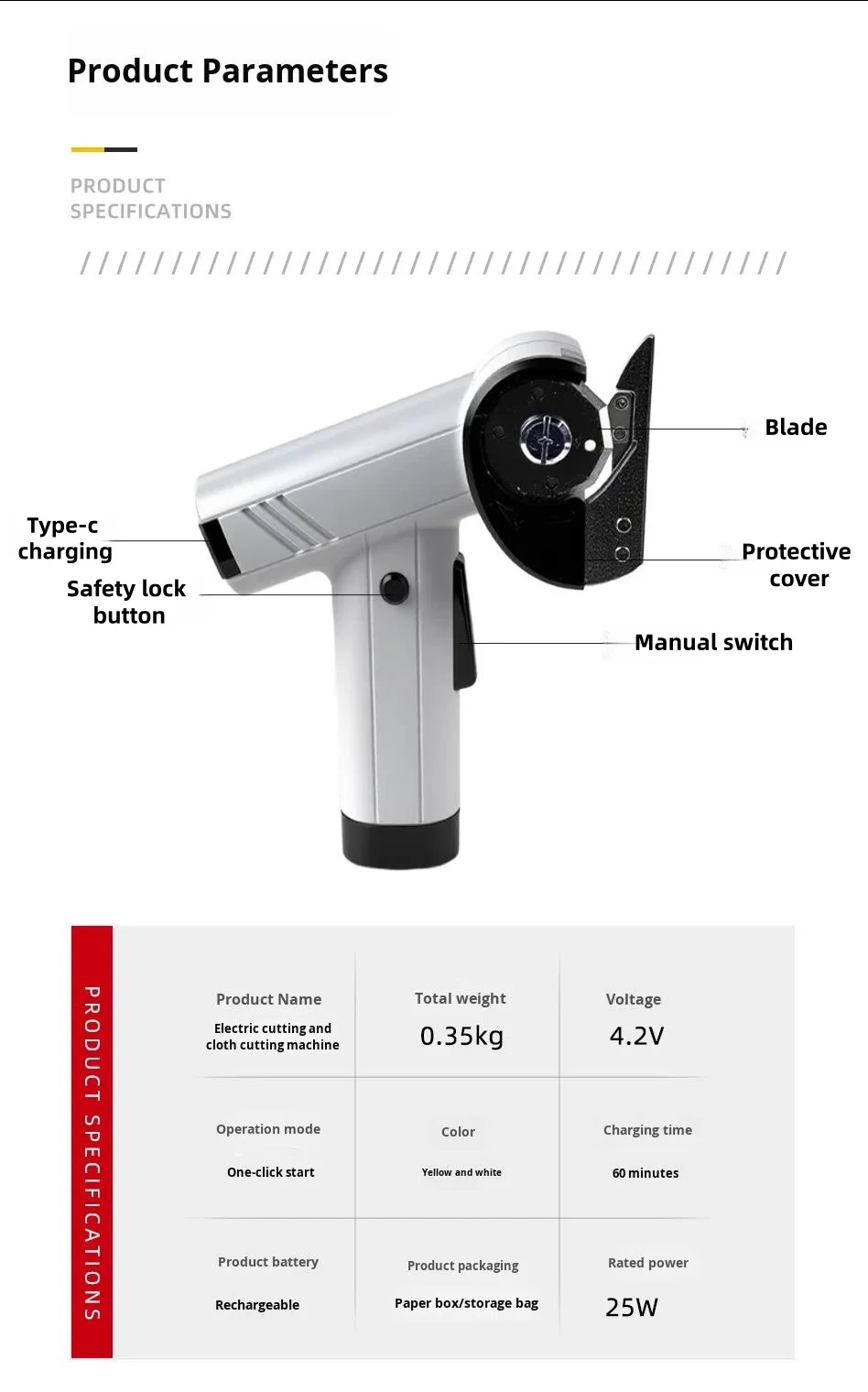 Cordless Handheld Lithium Battery USB Charging Electric Scissors for Cutting Fabric, Carpet, Leather, and Cardboard Cutting