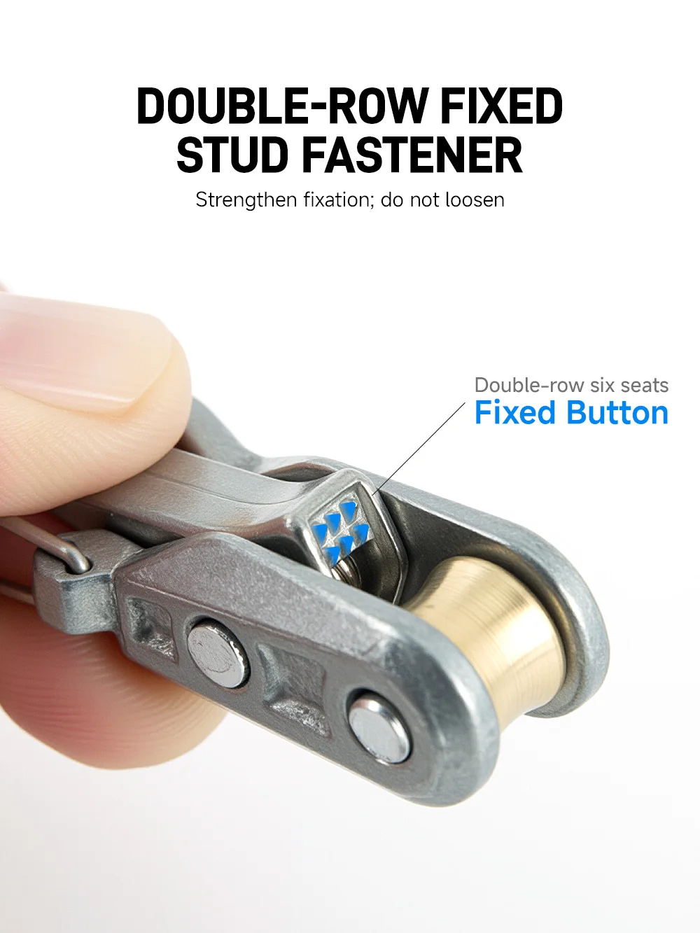 2. Dual-row six-point buckle for reinforced securing,with spring-loaded auto-locking mechanism to prevent loosening