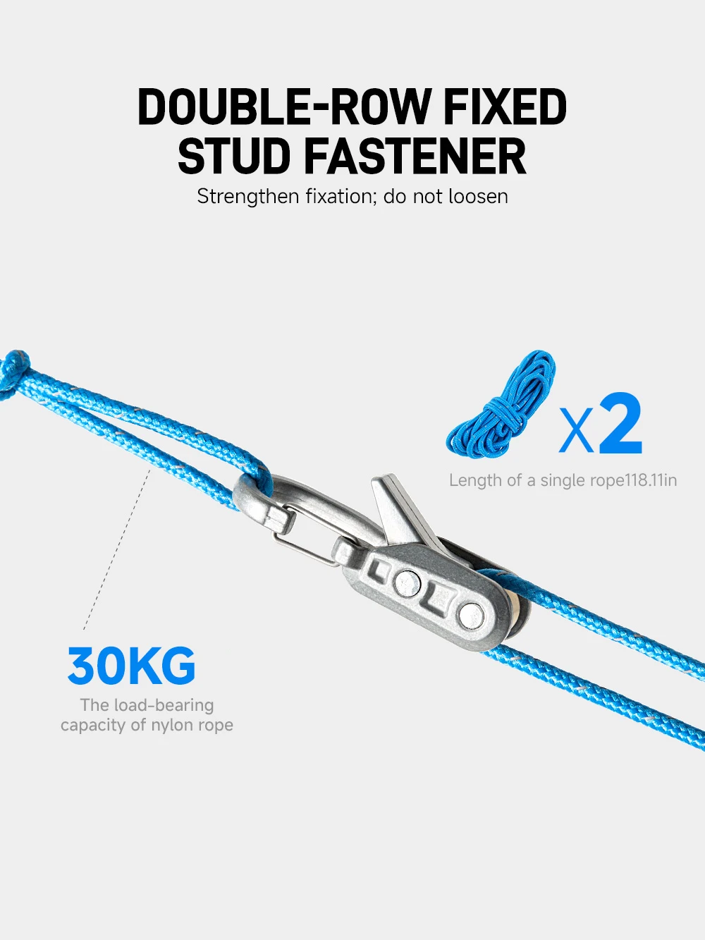 4. Polyester + nylon hybrid core weave for abrasion resistance and tensile strength, with nylon rope supporting up to 66.1 lb