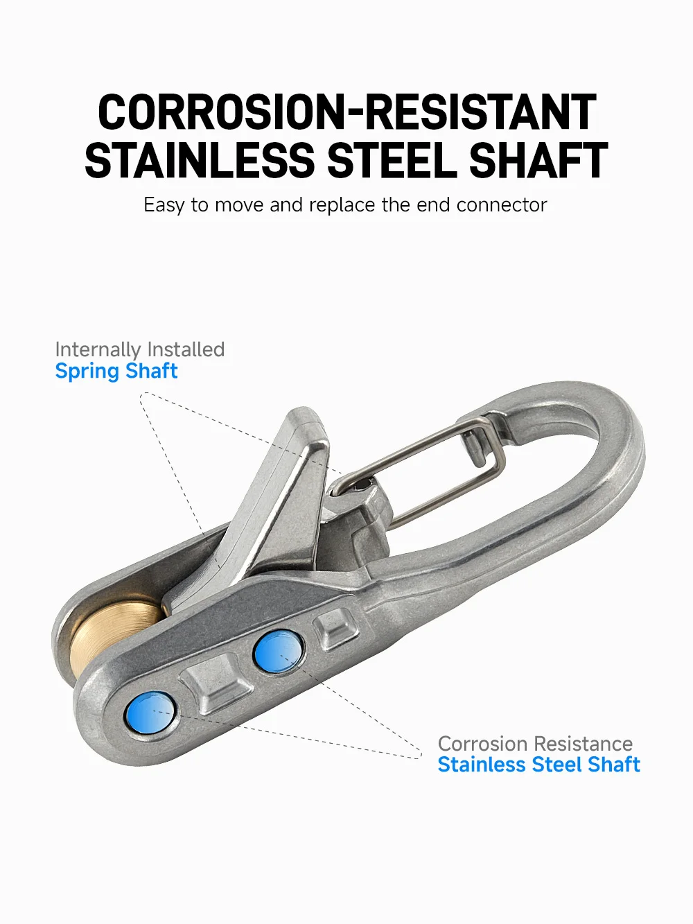 3. Corrosion-resistant stainless steel shaft with internal spring mechanism for easy replacement