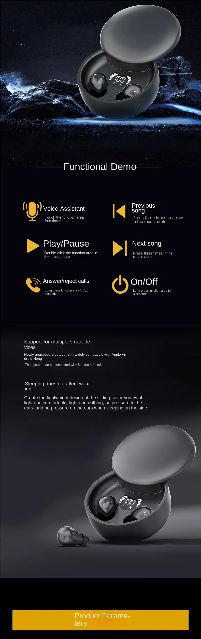 2025 Ultra-Miniature LED Wireless Earphones, Unisex, Sleep Aid, Noise Reduction, Waterproof
