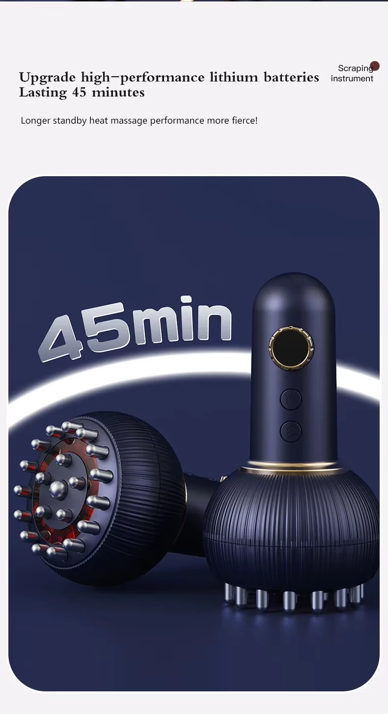 Wireless charging microcurrent vibration massager, electric gua sha device, meridian massage brush