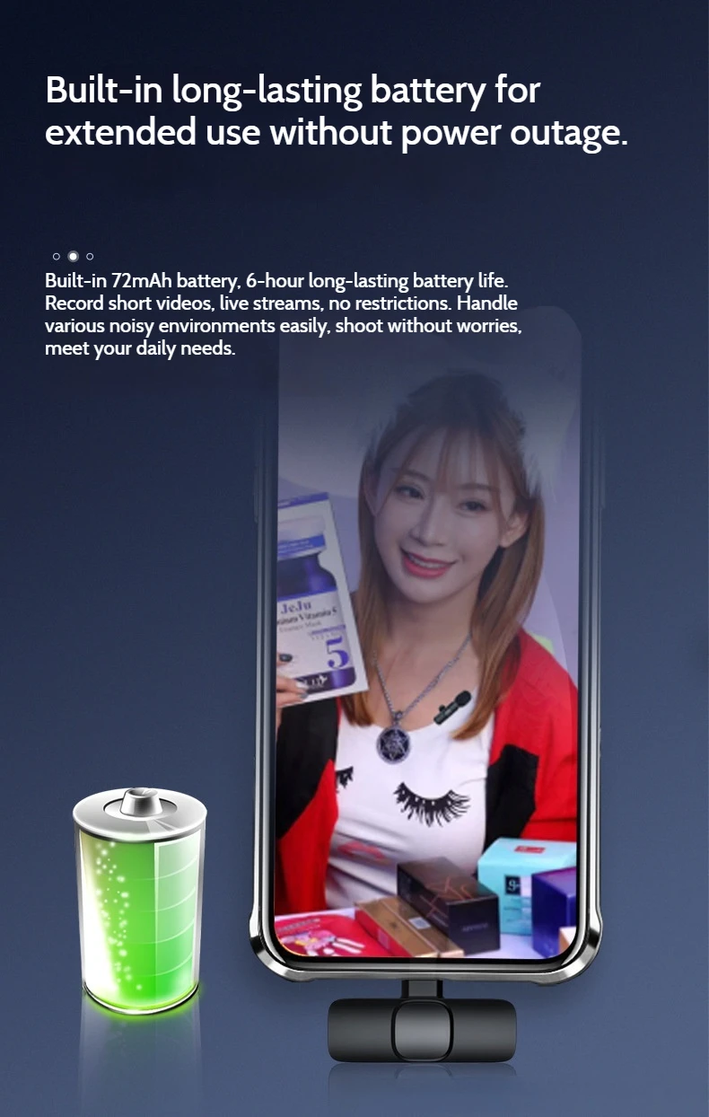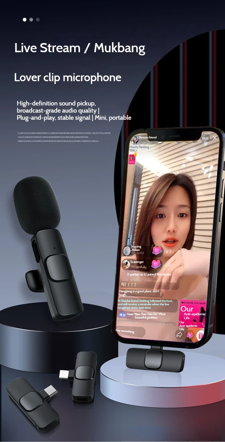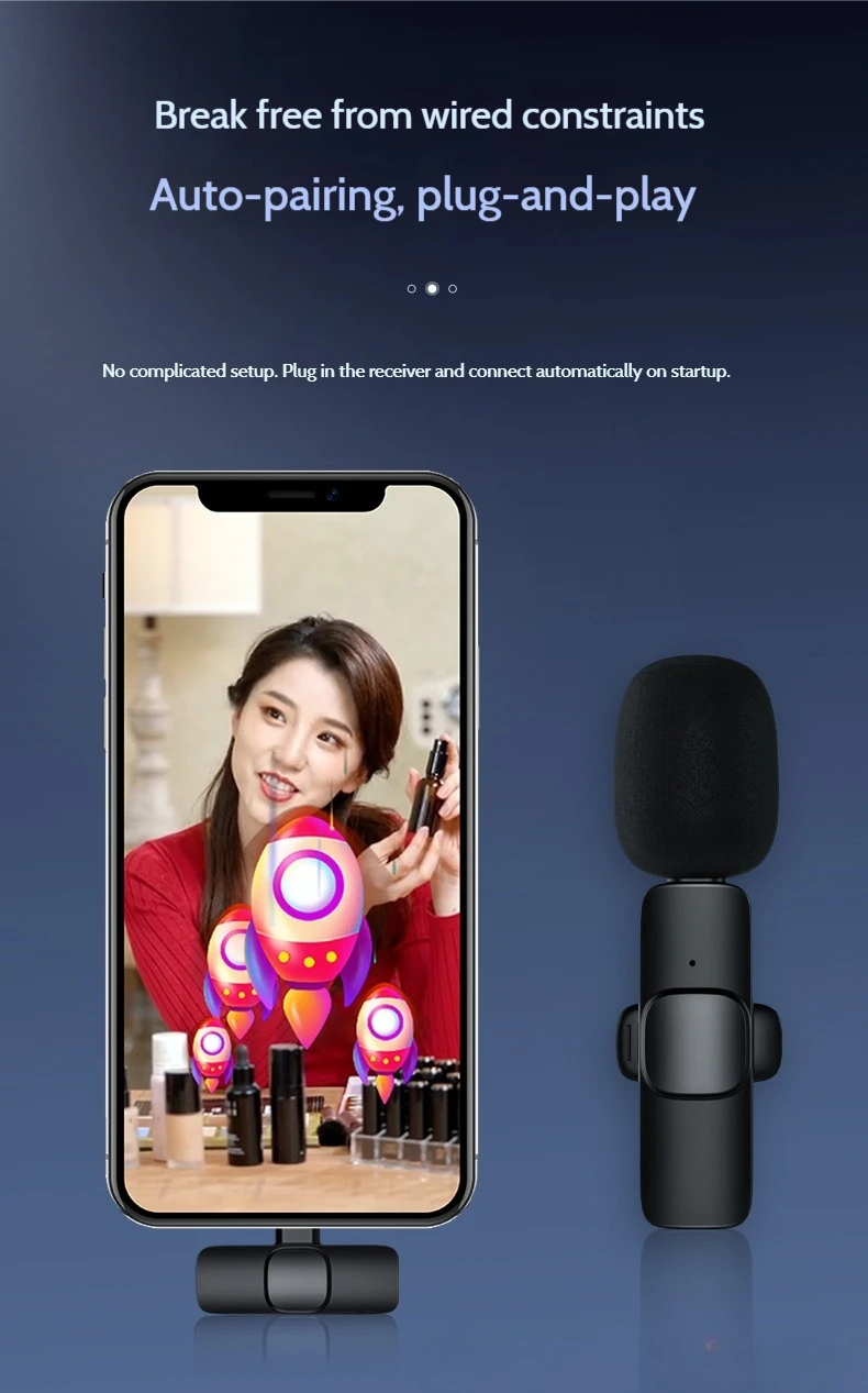 Wireless Lavalier Microphones for iPhone, Android, iPad - Mini Wireless Clip-on Microphones Crystal Clear Sound Quality for Recording, Live Streaming,Vlog