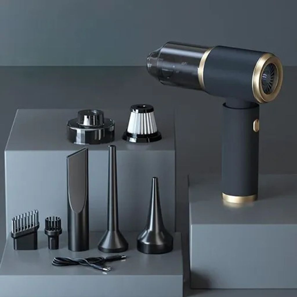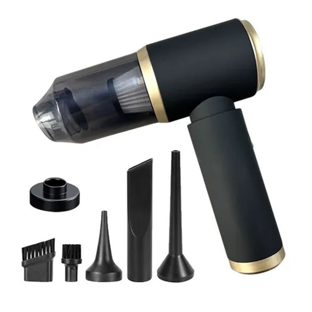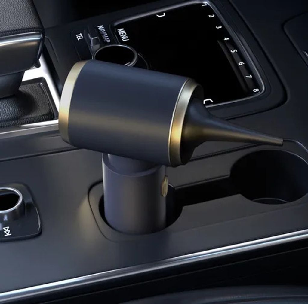 Car vacuum cleaner with dual functions of suction and blowing. It's a wireless mini vacuum, suitable for both car and home use. It's an electric dust blower too