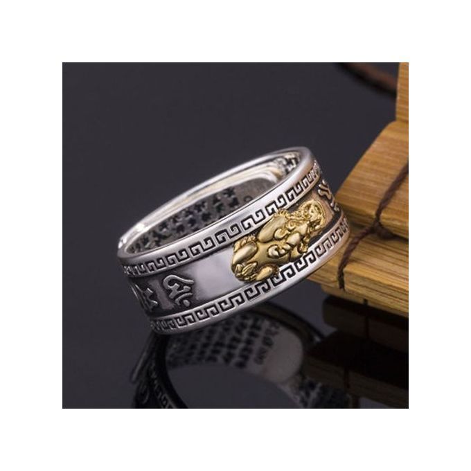 - Along with the many ancient symbols inscribed onto the inside of this ring, it also has the Six Syllable mantra Om Mani Padme Hum.